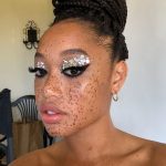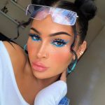 The gems, the colour, the double liner – we can’t cope. @branalunan is 60s/futuristic in graphic liner and space buns.