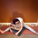 Ground your sitting bones down evenly. Bring your legs to a sustainable widened position. You want your legs to relax here, so it you have tight hamstrings, maybe bend the knees a little. Now for the fun part, pile up your pillows, blankets, duvet and create a soft foundation in between your legs. When you’re ready take a deep inhale to prepare, extending your arms above your head. On your exhale, melt your chest forward as you pore over your comfy support. Take between 6-12 breaths in this pose, just completely let go, unwind & relax.