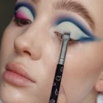Next is the cut crease. To get the cleanest cut, take some makeup remover on a cotton bud and remove any excess product from the lid. This will help to prevent the blue shadow from mixing with the Eye Base and changing the colour of the cut crease.