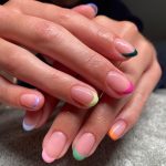 You know we can’t resist a set of bright nails, any time of the year. @samrosenails is providing all the inspo with this rainbow tip design with chrome detailing.
