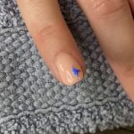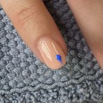 Using a dotting tool (a bobby pin works well for this step) start by applying a dot of blue polish onto the nail.
