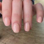 As always, start out by prepping and filing your nails into shape with a nail file and cuticle pusher. We’ve opted for a slightly rounded edge, but feel free to go for a square tip if you wish. Then apply a base coat and a pinky nude base (remember to use thin coats and let them dry in between).