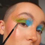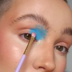 Prep the eyelid lightly using your favourite eye base, I used the By BEAUTY BAY Eye Base in Shade 2. Then begin to build up shade Blue Monday in the inner half of the eye. To do this you can use the tip of the applicator the eye paints come with, or a small brush – I am using the BC15 brush from Brush Candy’s Violets 15 Piece Brush Set. Aim to fill the lid with colour and then gently tap across the crease of the eye and up onto the brow bone, leaving some blank space to create the look of a paint splatter.