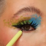 On a super tiny brush, next take shade La Zona Rosa to create tiny flicks of colour across the eye. For this I used the Sigma EO6 Winged Liner brush. Adding these tiny accents of pink adds to the paint splatter effect.