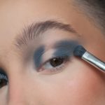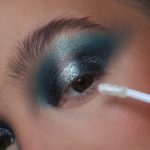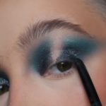 Repeat all the same shades and techniques on the lower lash line. Use a black gel liner to line the waterline and leave a small gap in the centre of the waterline to mimic the same effect created on the lid.