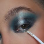 To fill in the inner part of the lid that has been left blank, take the shade Prism and tap this on, coating the blank space and blending it gently into the shades already on the eye, this is most easily achieved with a finger.